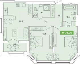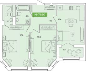 43 м2