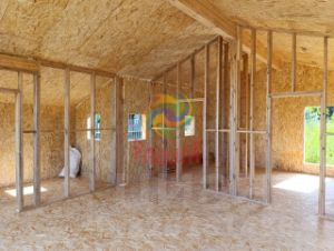 ОписаниеОдноэтажный каркасный дом, облицованный фасадной плиткой Хауберк, площадью 91 кв.м. по внешнему периметру.Фундаментж.б. сваиНаружные стеныкаркасные из доски 45х195мм, с утеплением минеральной ватой толщиной 200мм. Наружная отделка стен: плитка ''Hauberk''.Внутренние стеныкаркасные из доски 45х145мм, дополнительная шумоизоляция минеральной ватой толщиной 150мм.Перегородкикаркасные из доски 45х95мм, дополнительная шумоизоляция минеральной ватой толщиной 100мм.Перекрытияиз доски 45х195мм, с утеплением минеральной ватой толщиной 200мм. Пол - ОСП плита.Полыс утеплением ЭППС.Крышадвускатная по деревянным стропилам. Покрытие кровли - металлочерепицаОкнаПВХ, 5-камерный профиль, двухкамерный стеклопакет.Наружная дверьметаллическая (техническая).КанализацияПВХ.Водосточная систематрубы ПВХ 100мм (50мм), выпуск из дома.Презентация проектовid:56828. - Безопасность- Лучшие юристы окажут полное сопровождение на всех этапах купли/продажи- Качество и Профессионализм. Наши специалисты признаны лучшими по уровню сервиса порталов.- Надежность и экономия. Мы являемся ключевыми партнерами всех ведущих банков. Личный ипотечный брокер выберет для Вас оптимальную программу ипотеки. - Прозрачность. Фиксированное агентское вознаграждение. Оплата только после совершения сделки.- Комфорт. Весь комплекс услуг купли/продажи. Формат ''одного окна'' в одном офисе в центре города- Уверенность. Мы входим в ТОП- 25 ведущих агентств недвижимости РФ по версии рекламных площадок.Сделка с недвижимостью - работа профессионалов. Вместе создаем наследие.