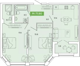 Продаётся 2-комнатная квартира в строящемся доме (блок А секции А1, А6, А7, А8, А9), срок сдачи: IV-кв. 2028, общей площадью 71.8 кв.м., на 4 этаже. Новый жилой комплекс ''Манифест'' от Специализированного застройщика ''Аквилон Иваново'' расположен по адресу: г. Иваново, по ул. Базисная.