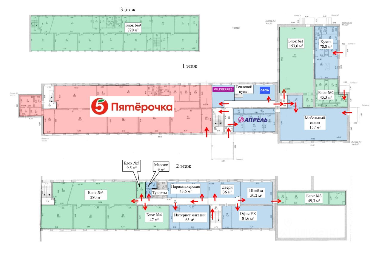Продается готовый арендный бизнес с потенциалом роста - отдельно стоящее трехэтажное торговое здание на собственном земельном участке. Площадь здания 2700 кв.м (1 эт - 1262 кв.м, 2 эт - 765 кв.м, 3 эт - 720 кв.м), площадь земельного участка 59 соток, здание и земля в собственности. В здании находятся арендаторы: Пятерочка, Аптека Апрель, Вайлдберриз, Озон, Мебельный магазин, офис управляющей компании, швейный цех, Магазин Дверей и другие. Текущий МАП (на апрель 2025) 840 000р. У всех арендаторов в договорах аренды предусмотрена компенсация коммунальных услуг. Есть вакантные площади на 1 и 2 эт, третий этаж весь свободный. Последние пол года идет стабильный рост арендного потока у Пятерочки, Вайлдбериса и Озона. При сдаче вакантных площадей потенциал роста арендного потока 1 млн+.