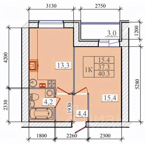 Общая площадь40,3 м2