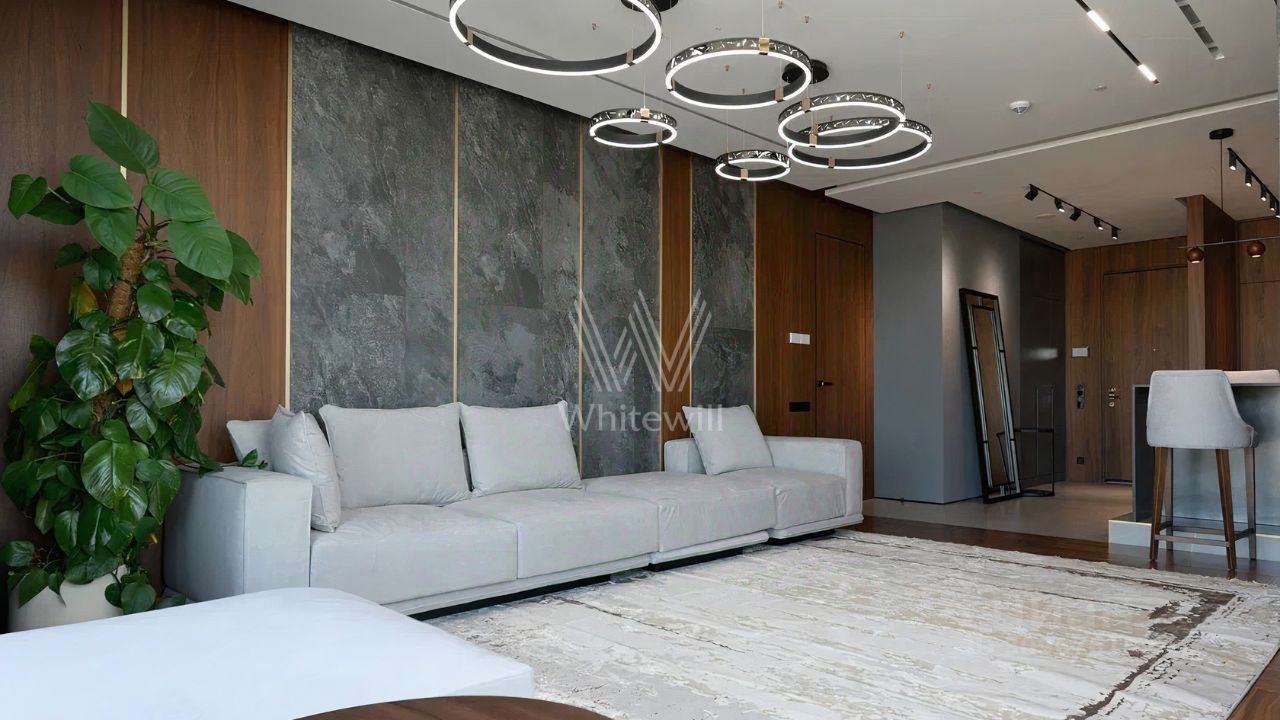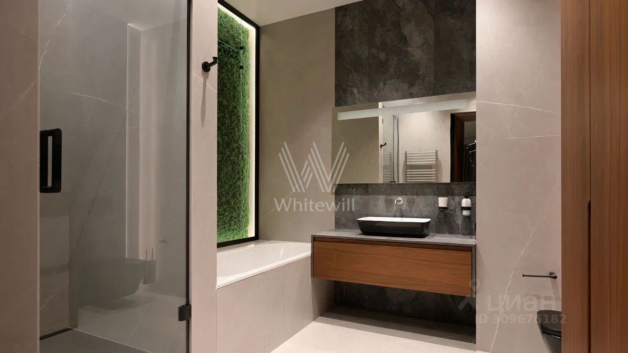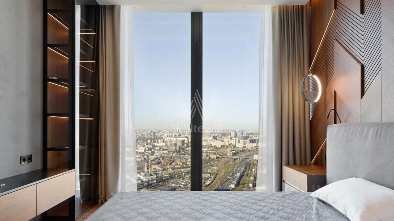 Апартаменты с одной спальней в комплексе небоскрёбов премиум-класса Neva Towers. Апартаменты расположены в башне ''Т1''. Выполнена дизайнерская отделка с использованием высококачественных материалов. Планировка включает кухню-гостиную с обеденной зоной, просторную мастер-спальню с собственной ванной и гардеробной, холл. Окна ориентированы на север, открываются панорамные виды на город и башни ''Москва-Сити''.