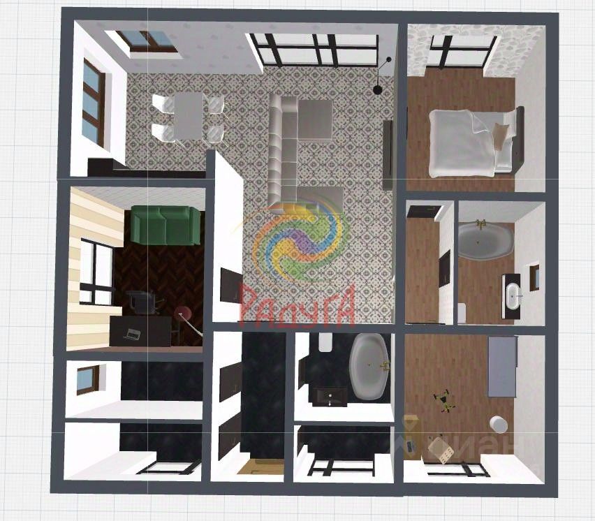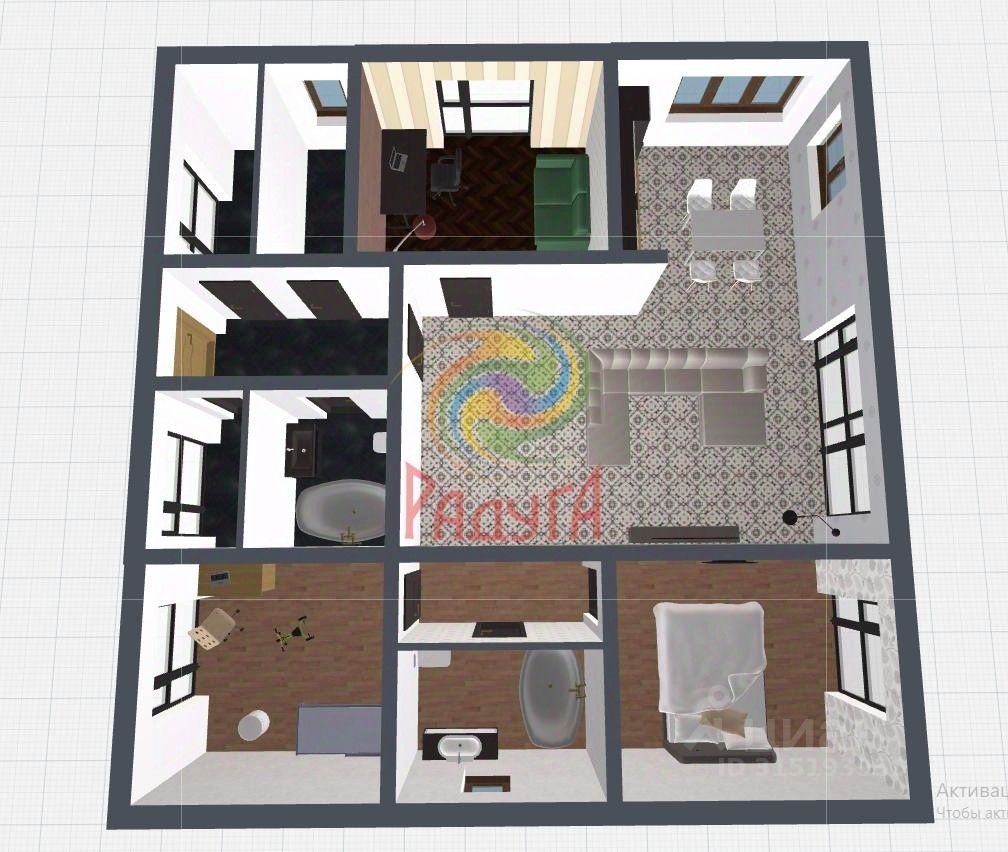 Лот:4381. Агентство недвижимости ''Радуга'' предлагает к приобретению новый дом 2025 года постройки в 10 минутах от города по адресу: Ивановский р-н, д. Кривцово, ул. Алексеевская. Интересный проект с шикарной планировкой, готов к чистовой отделке. 3 изолированных спальни, большая кухня-гостиная 35 м2, котельная, гладильная, гардероб, 2 сан. узла, веранда. Площадь дома 150 м2, на сухом, ровном участке 10 соток. Дом: подушка под фундамент - 1м. фундамент - монолитная плита 30 см. стены - 500 газосиликатный блок, фасад - облицовочный кирпич, окна - панорамные, энергосберегающие, 2х камерные, с ламинацией и заводским затемнением, с немецкой фурнитурой, крыша - металлочерепица, толщина 0,5 мм.