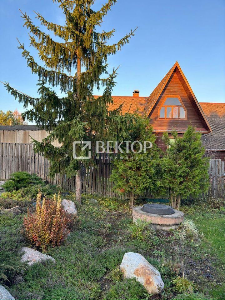 Ландшафтный дизайн участка продуман до мелочей: взрослые туи, искусственный пруд создают атмосферу уюта и гармонии. Всего две минуты пешком - и вы у реки, ведь участок крайний, без лишних обходов.