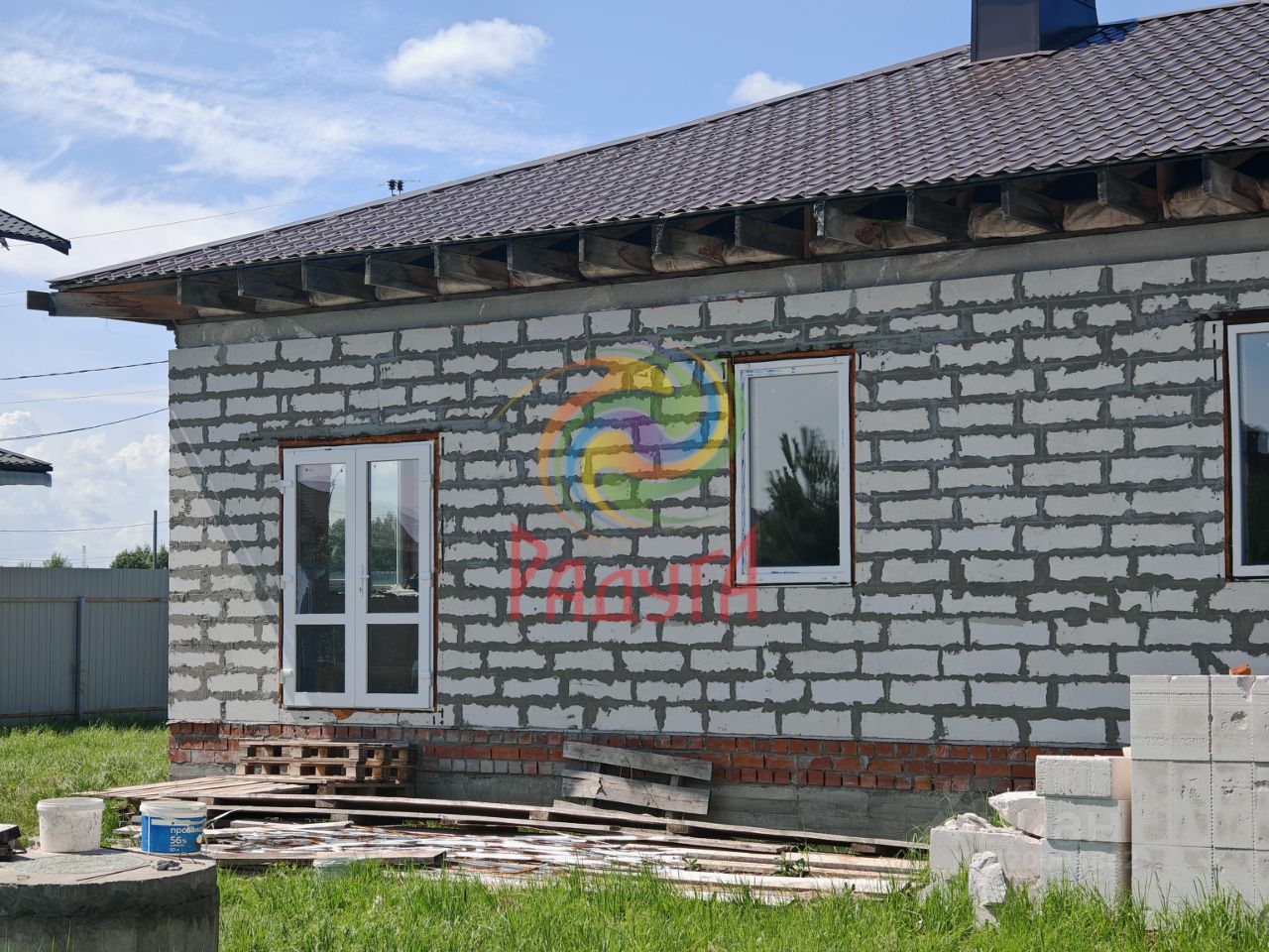 Дом построен из качественных газобетонных блоков, что гарантирует прекрасный микроклимат и энергоэффективность. Свайно-ростверковый фундамент с железобетонными плитами обеспечивает надежность и долговечность конструкции, деревянное перекрытие с качественным утеплением создает дополнительный комфорт, а прочная кровля из металлочерепицы надежно защищает от любой непогоды.