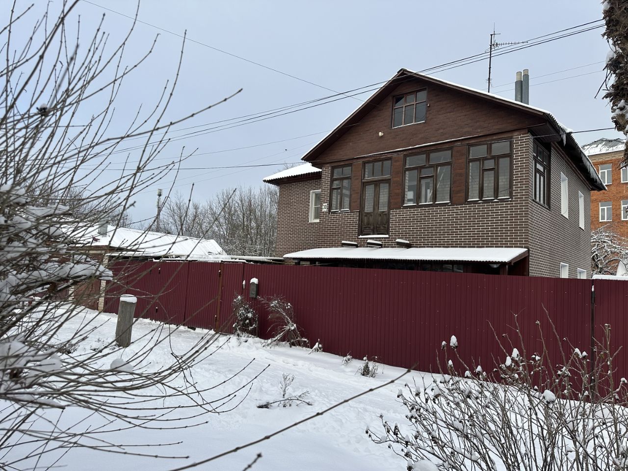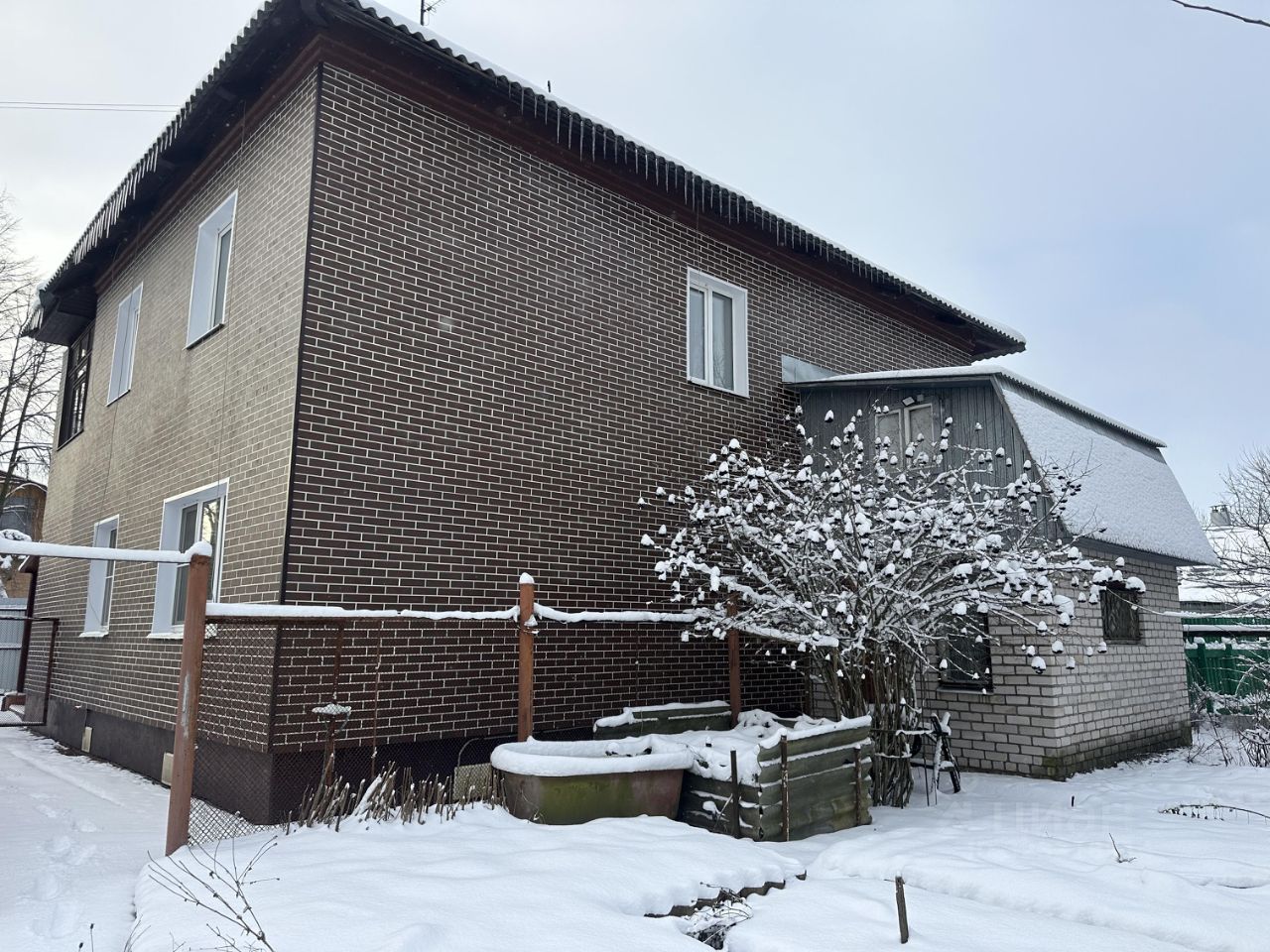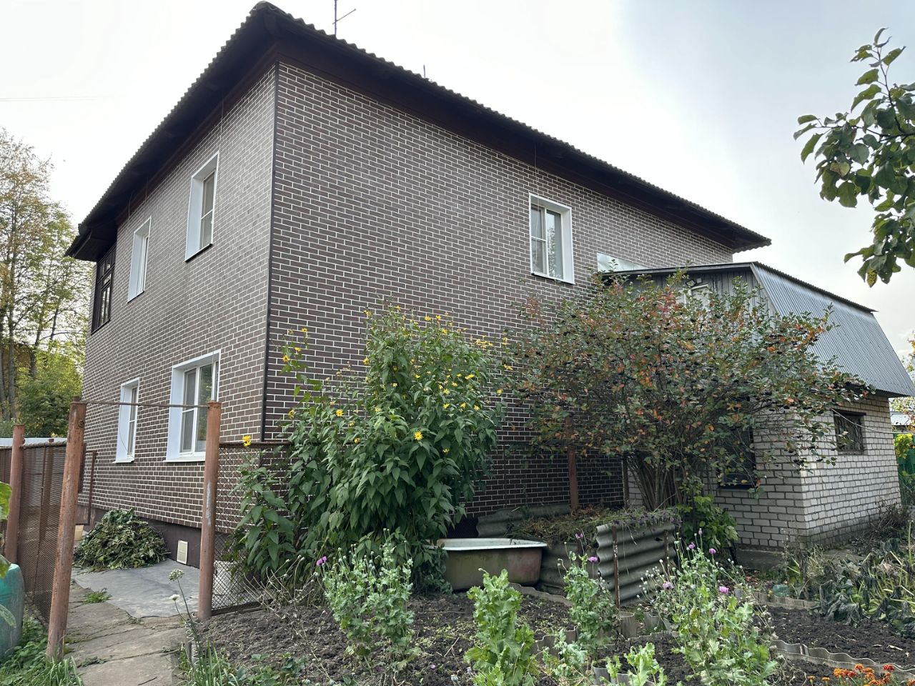 Дом 1993 года постройки, 2 этажа, толстые кирпичные стены. Общая площадь - 170 кв метров (из них 37 кв метров большой гараж).