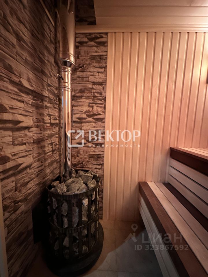 Чистовая отделка. Зона отдыха: матовый натяжной потолок, 2 спотовых светильника (у входной группы и над подтопком)+1 центральный,Напольное покрытие - замковый кварцвинил 21-23 класса, Стены - имитация бруса А/''Экстра'' класса. Душевая: матовый натяжной потолок, 1 спотовый светильник по центру, Напольное покрытие - рельефная анти скользящая плитка под камень, размером 400*400*10мм, душевой трап, Стены - керамогранит под камень. Парная: Стены/потолок вагонка липа А/''Экстра'' класса. Напольное покрытие совмещено с душевой зоной и уложено той же плиткой. 2 зоны освещения: 2 угловых светильника в абажурах с гималайской солью, а также панно из можжевельника на потолке с подсветкой с теневым зазором.
