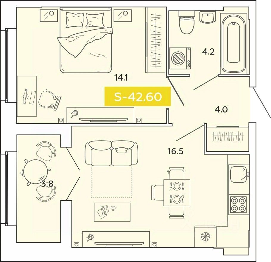 Продаётся 1-комнатная квартира в строящемся доме (блок А секции А1, А6, А7, А8, А9), срок сдачи: IV-кв. 2028, общей площадью 42.6 кв.м., на 6 этаже. Новый жилой комплекс ''Манифест'' от Специализированного застройщика ''Аквилон Иваново'' расположен по адресу: г. Иваново, по ул. Базисная.