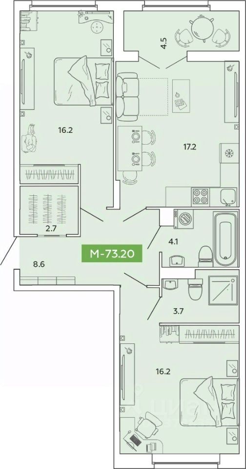 Продаётся 2-комнатная квартира в строящемся доме (блок А секции А1, А6, А7, А8, А9), срок сдачи: IV-кв. 2028, общей площадью 73.2 кв.м., на 2 этаже. Новый жилой комплекс ''Манифест'' от Специализированного застройщика ''Аквилон Иваново'' расположен по адресу: г. Иваново, по ул. Базисная.