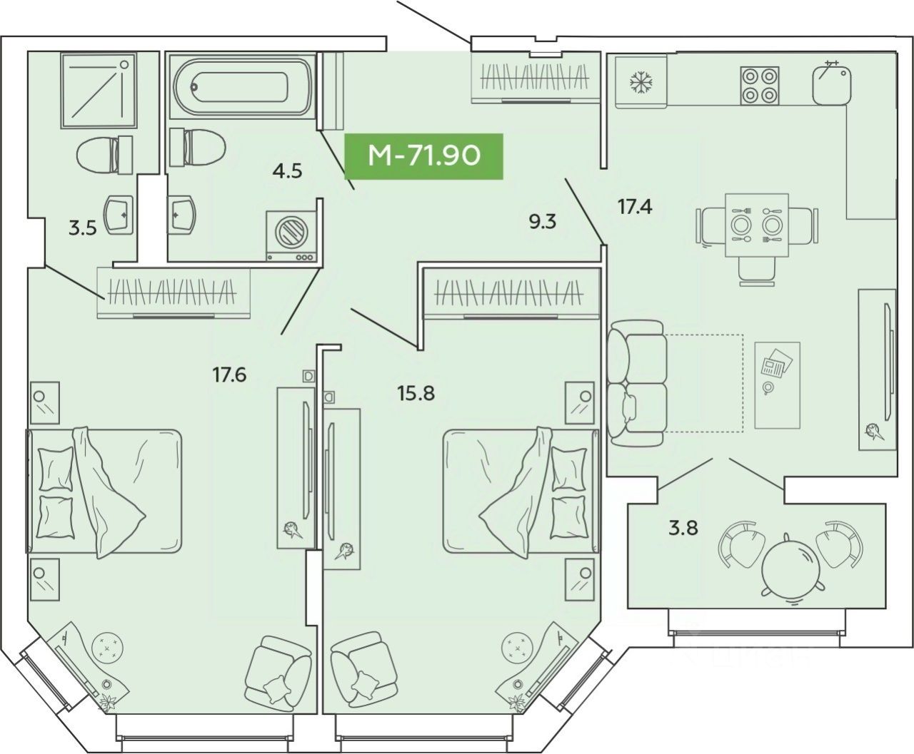Продаётся 2-комнатная квартира в строящемся доме (блок А секции А1, А6, А7, А8, А9), срок сдачи: IV-кв. 2028, общей площадью 71.9 кв.м., на 6 этаже. Новый жилой комплекс ''Манифест'' от Специализированного застройщика ''Аквилон Иваново'' расположен по адресу: г. Иваново, по ул. Базисная.
