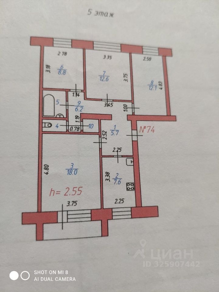 Квартира отлично подходит для большой семьи. Общая площадь 79,6 м2. Есть лоджия. Окна на две стороны дома (распашонка).