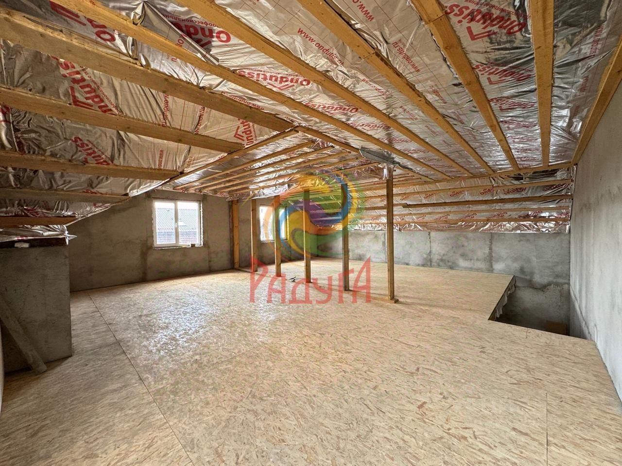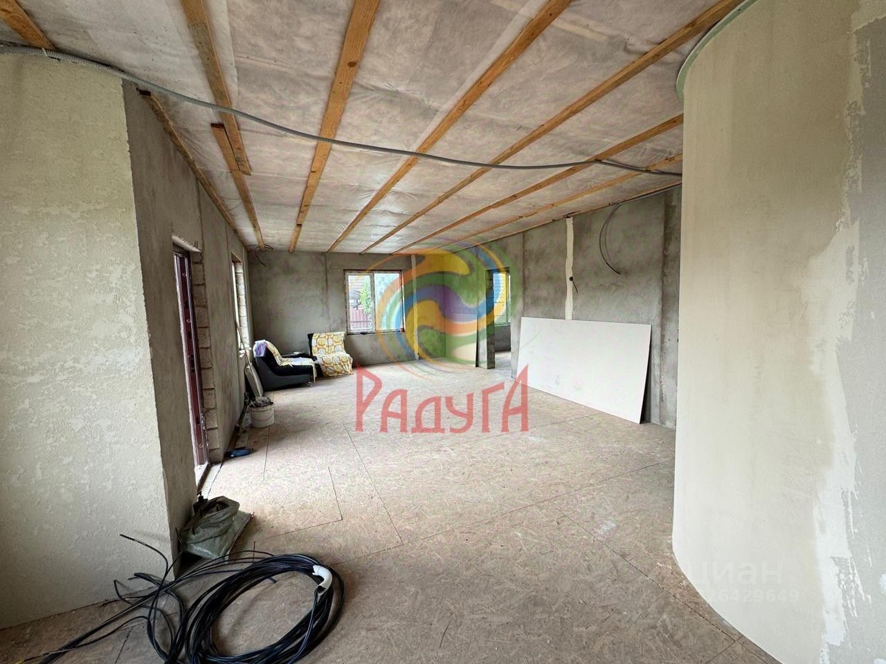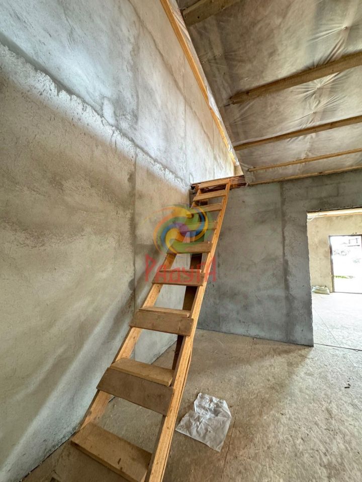 Общая площадь - 357,6кв.м. Площадь части - 178,8кв.м. фундамент - свайно-ростверковый, стены - пескоцеметные блоки с утеплением пенопластом 150мм, перекрытия - балки 200, крыша - металлочерепица с утеплителем 200, пароизоляция и гидроизоляция, фасад - короед, газ проходит по границе участка (есть разрешение), свой отдельный септик, скважина в доме под лестницей.
