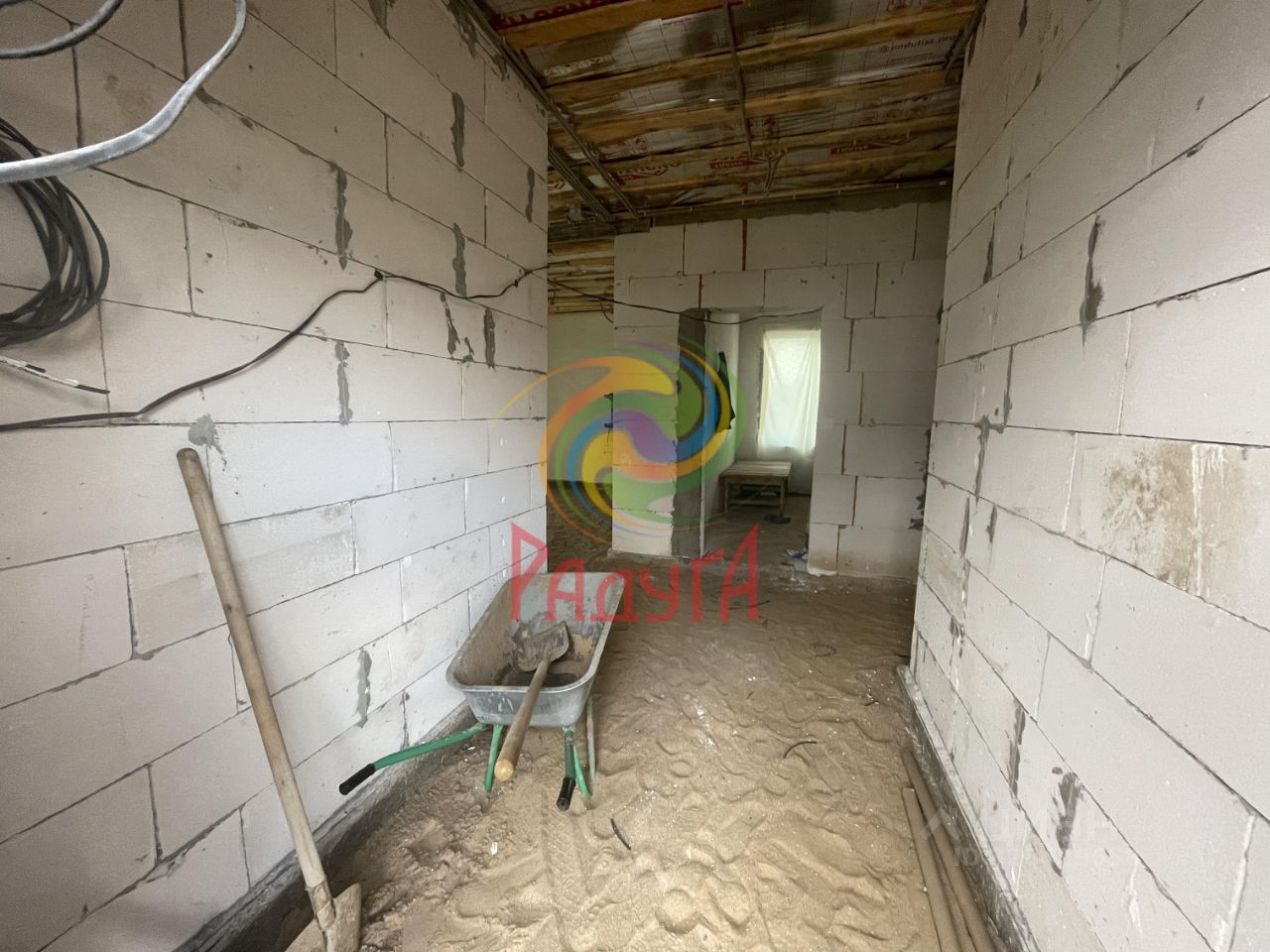 В доме имеется: - Электричество, (проводка разведена) - Частично залиты полы и выполнена штукатурка стен - Газ по границе участка