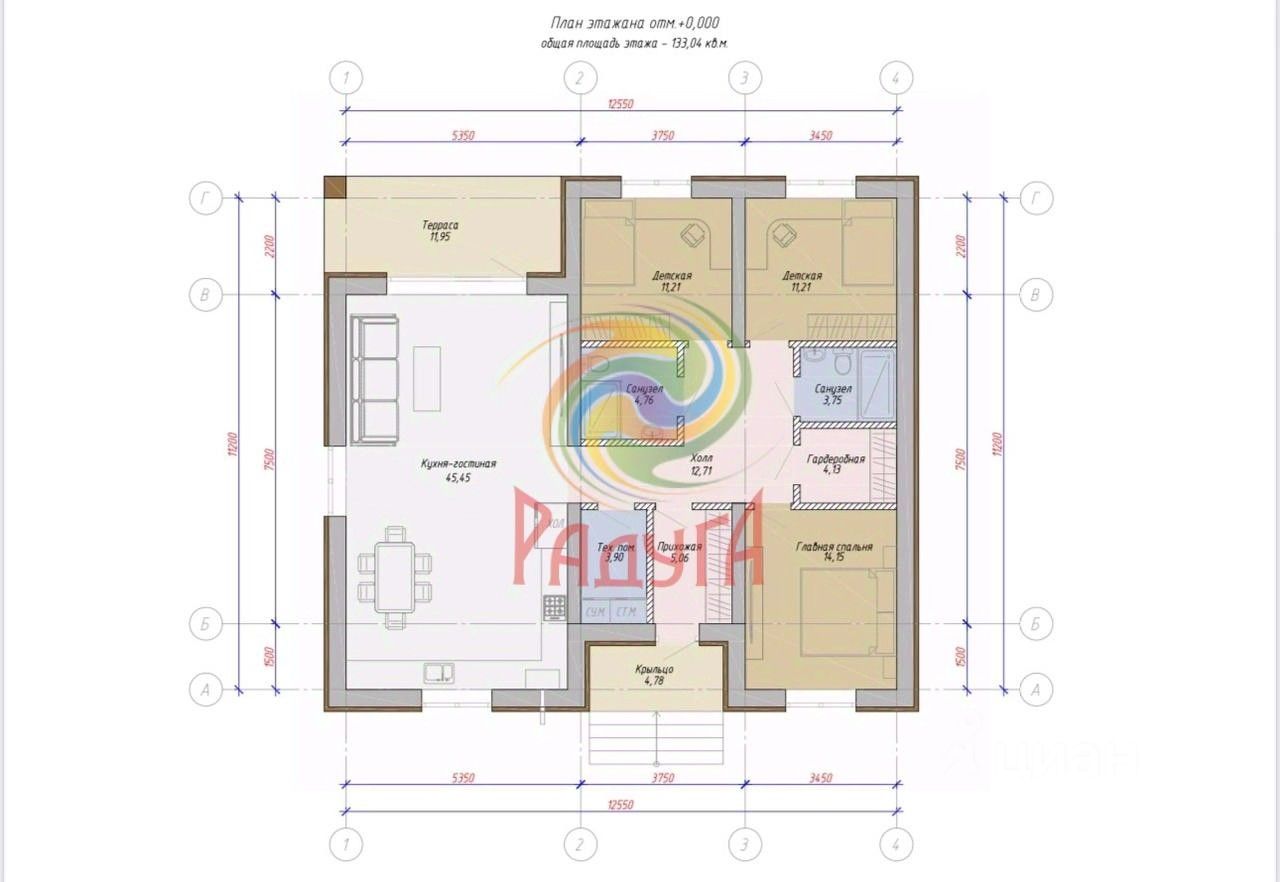 Общая площадь133,6 м2