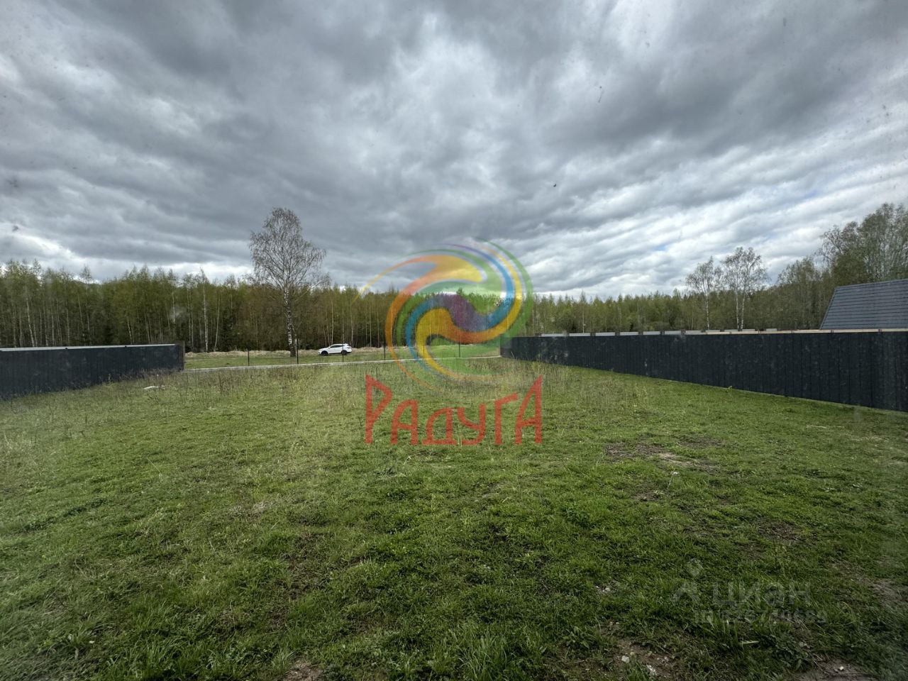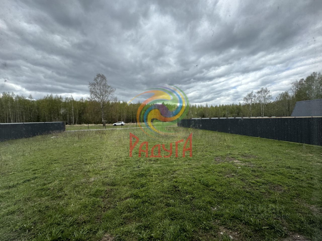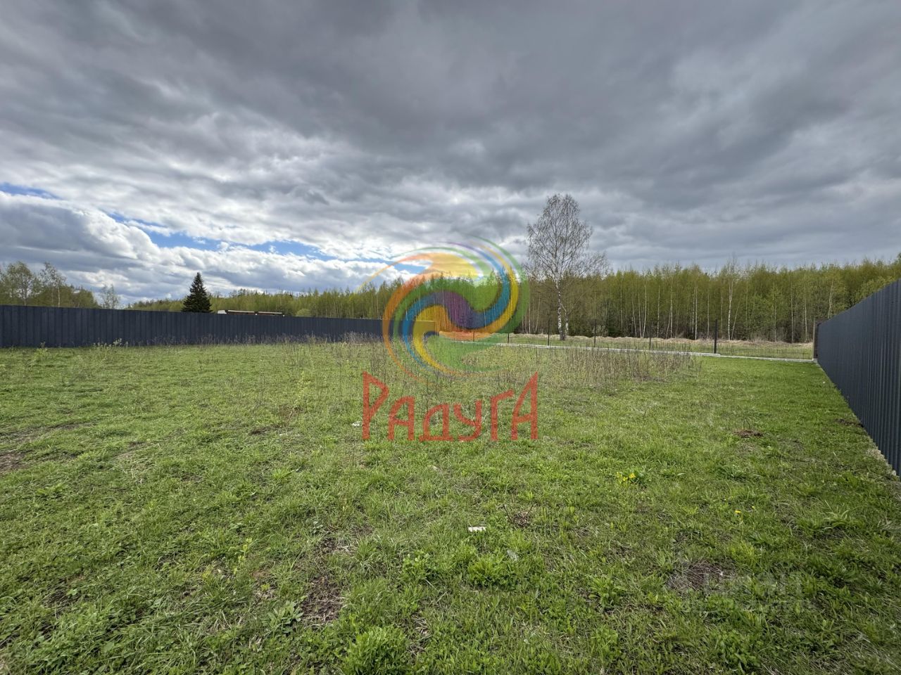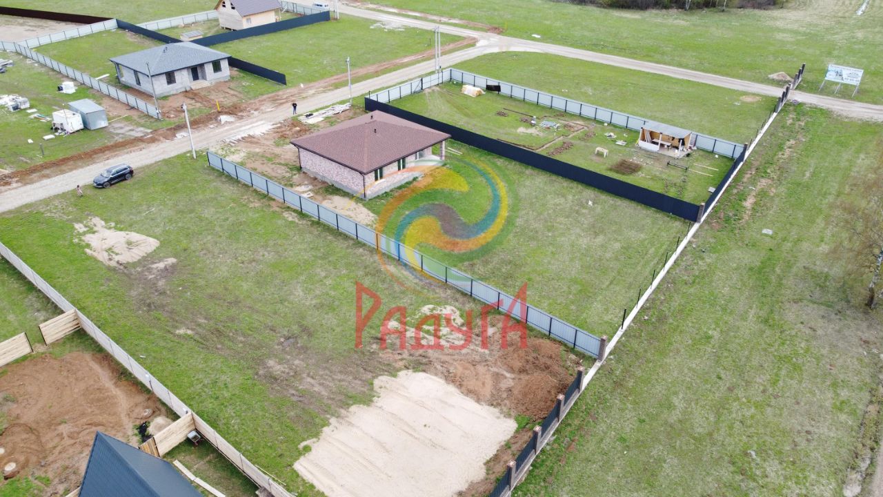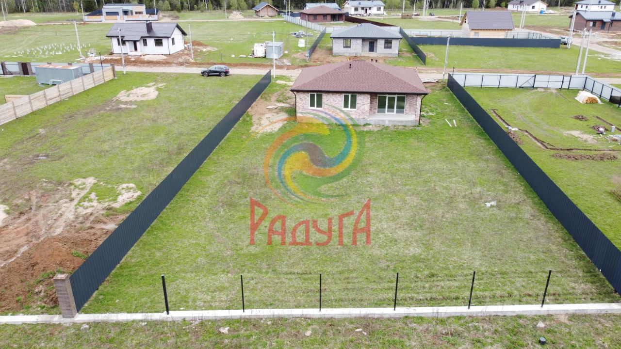 Земельный участок правильной формы. Забор по периметру участка из профлиста, не огорожена фасадная часть. Планировка и все размеры указаны в плане на фото.