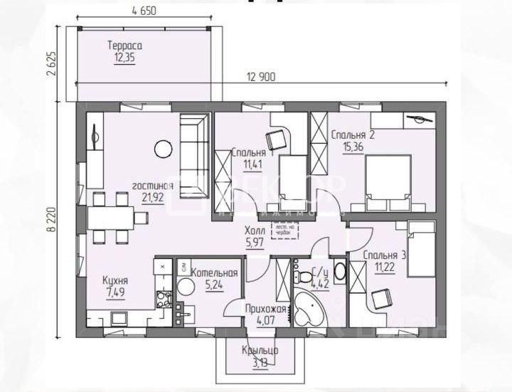 Предлагаем к продаже чудесный дом 87 кв м Три комнаты 11,41, 15,36, 11,22 м2 Кухня-гостиная 29,4 кв м Прихожая и холл 10,1 м2 Котельная 5,24 м2 Санузел 4,42 м2 Терраса 12,35 м2