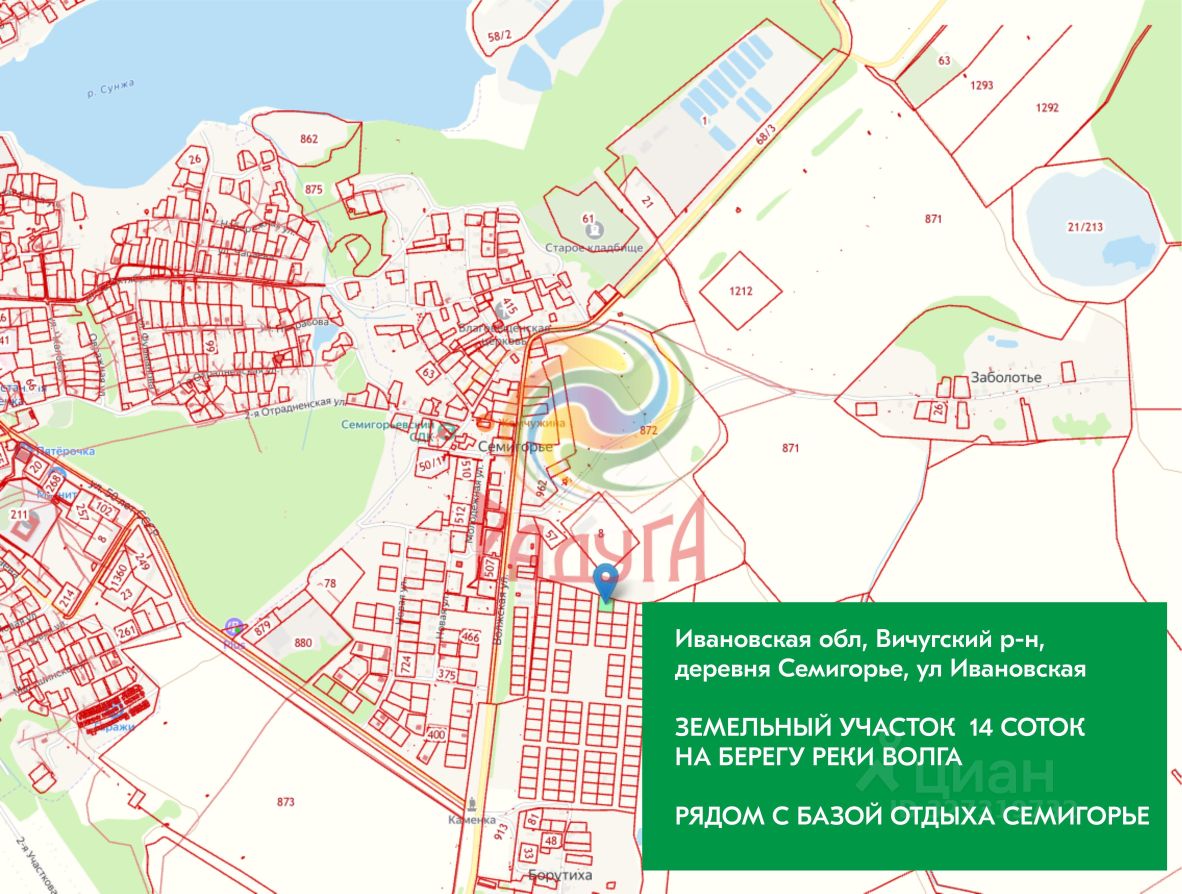 Адрес участка: Ивановская область, муниципальный район Вичугский, сельское поселение Сунженское, деревня Семигорье, улица Ивановская, земельный участок 2 Кадастровый номер: 37:02:010729:1048 Категория земель: Земли поселений (земли населенных пунктов), ИЖС - Для индивидуального жилищного строительства Площадь: 1 387 кв.м. - 14 соток! Категория и виды разрешенного использования: * Земли населенных пунктов * Для индивидуальной жилой застройки * Земли под домами индивидуальной жилой застройки